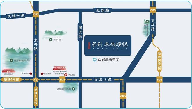 紧邻太华路/凤城八路/未央路,通达全城,接驳地铁2号线号线(在建中)/西安北站,贯通全城,辐射全国。